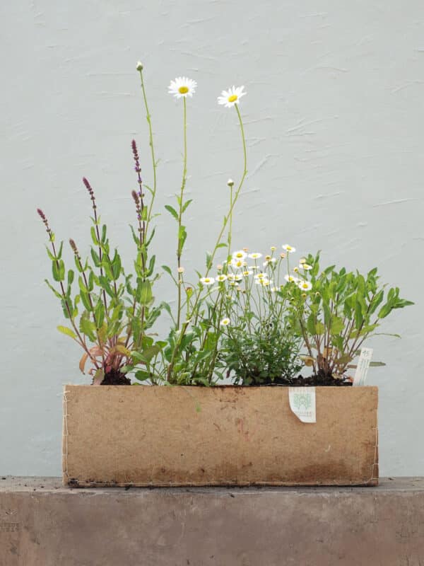 Un prato fiorito in cassetta, un’esplosione di primavera ci ricorda una passeggiata in campagna. I bulbi annunciano la primavera con i loro profumi e colori, le grandi margherite e le pennellate viola svettano sullo sfondo del cielo azzurro. In autunno inverno tutto sfiorisce, rimane solo un timido Erigeron ricadente sul vaso fino ai primi freddi. Con il ritorno della primavera, ricomincia lo spettacolo!